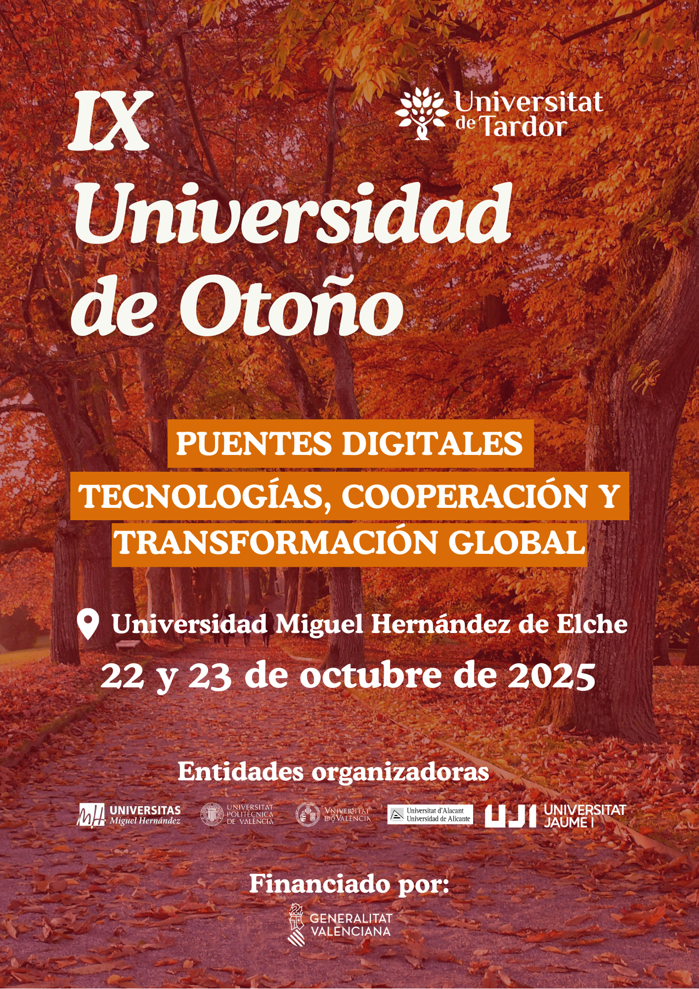 Ya está abierta la inscripción para la IX Universidad de Otoño,unas jornadas interuniversitarias. El plazo de inscripción permanecerá abierto hasta el próximo 12 de octubre. ¡No te lo pierdas!