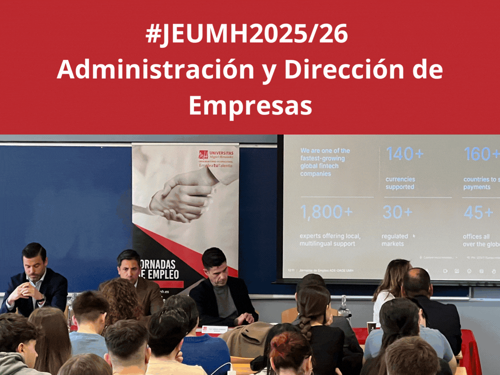 Marzo ha estado lleno de Jornadas de Empleo y actividades de participación Alumni UMH: ADE y DADE (Elche) (Éric Miralles) , Bellas Artes (Sandra Tortosa, Lidia García y Lorena López) , Biotecnología (Diana Sáez, Sergio Martínez, y Ernestina García) , Seguridad Pública y Privada (Miguel Checa, Wiktoria Jaroszewicz, María del Mar Ruiz, Sandra Pérez, Alba González y Joaquín Sánchez) , EPSO (Miguel Ferri, Maria Teresa Galindo, Miriam Ramón y David Vicario) y EPSE (Carlos Calero, Ane Pascual, Manuel Vico y Juan Pablo Ducos de Launou).